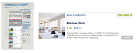 Avec 4 fois plus d’audience que son concurrent le plus proche et un engagement des surfeurs 8 fois supérieur (nombre de visites multiplié par le temps passé sur le site), Immoweb est plus que jamais votre partenaire privilégié pour la gestion de vos transactions immobilières de tous types : ventes de gré à gré, ventes publiques et locations.